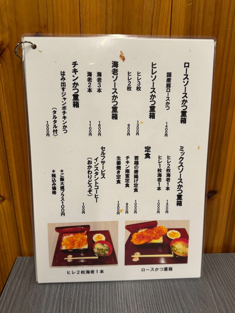 ✅駒ヶ根名物のソースかつ丼を「重箱」に入れて提供しています。使用する豚肉は国産で、ヒレカツは柔らかく仕上げられ、大ぶりの海老カツも人気メニュー🍤